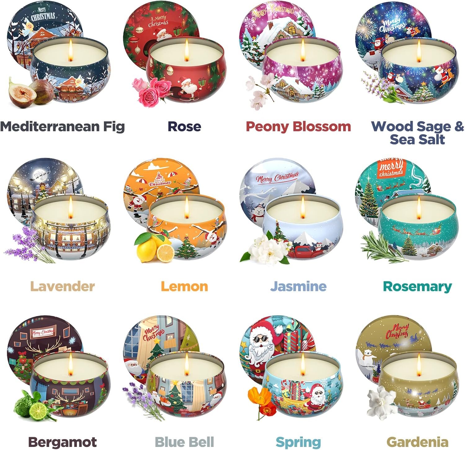 🎄🎁【Nachhaltige vollständige Verbrennung】2,5 Unzen Sojawachskerze brennt 12–15 Stunden/Dose. Dieses Duftkerzen-Geschenkset bietet Ihnen 12 verschiedene süße und milde Düfte, um eine herrliche Atmosphäre zu schaffen. Duftkerzen liefern einen süßen, weichen Duft, um eine gemütliche Atmosphäre zu schaffen und Ihren Geist zu beruhigen. Egal wie lange es brennt, der Duft verfliegt nie. Perfekt für Yoga, Bad, Meeting, Büro, Spa und mehr.